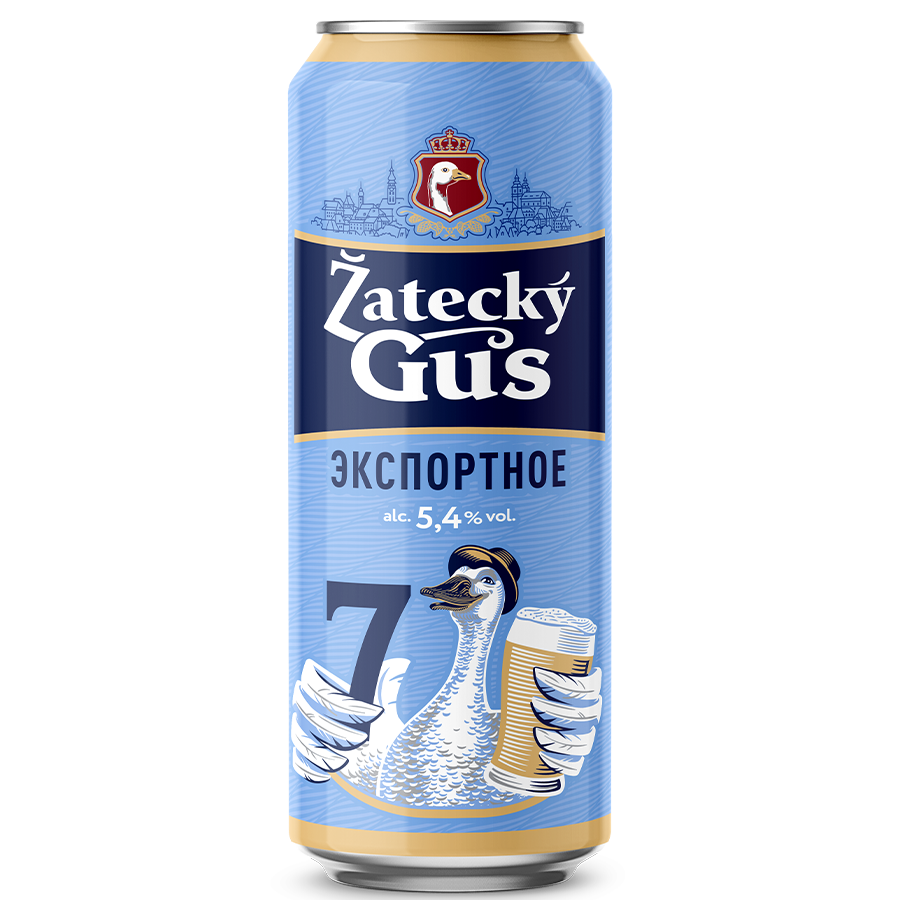 Zatecky Gus 7 экспортное —классический лагер, сваренный из отборного солода и хмеля. Вкус пива отличается насыщенностью и небольшой солодовой сладостью, а в его аромате преобладают яркие хмелевые ноты. % алкоголя:5,4%