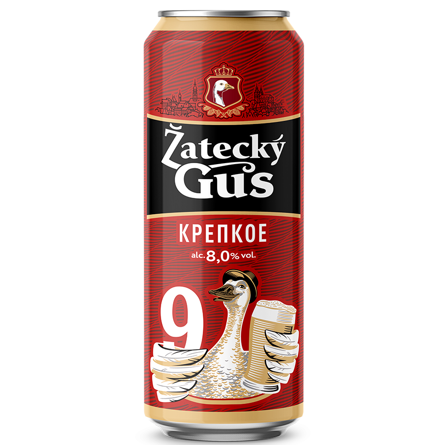 Zatecky Gus 9 крепкое —классический крепкий лагер, сваренный из отборного солода и хмеля. Крепость достигается исключительно путем естественного брожения с применением особой культуры дрожжей. % алкоголя:8%